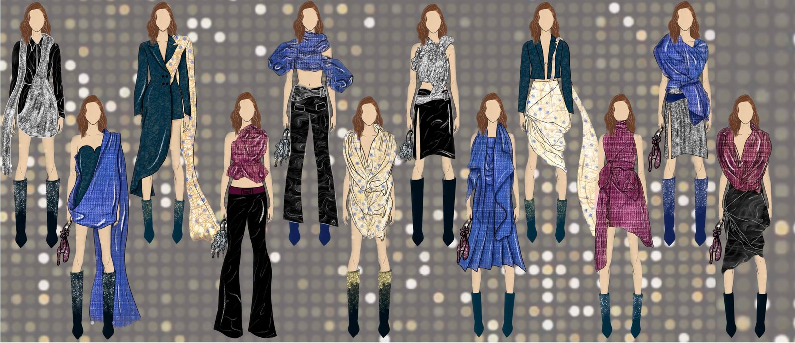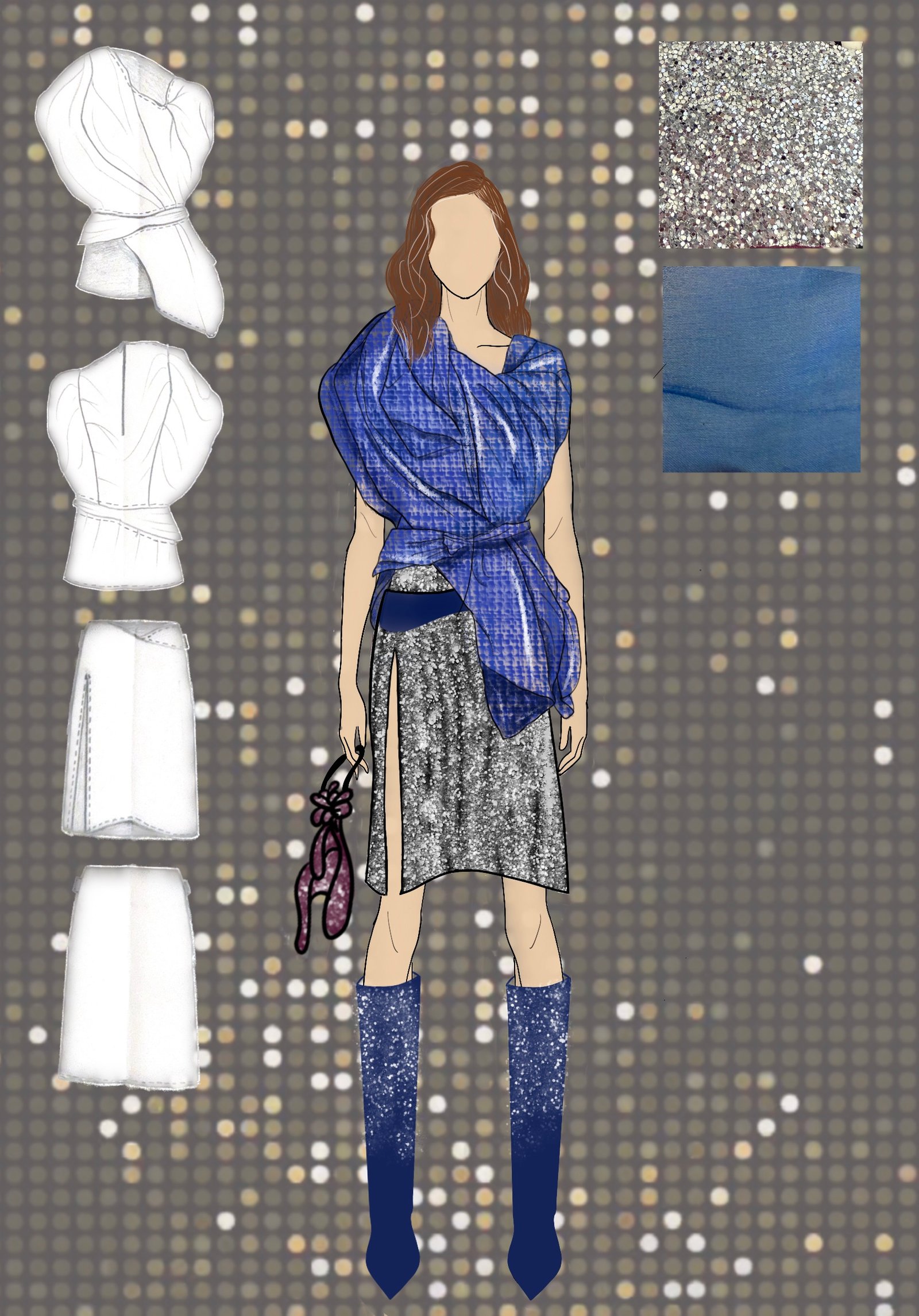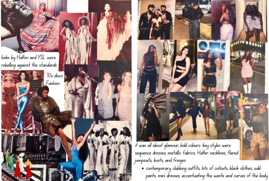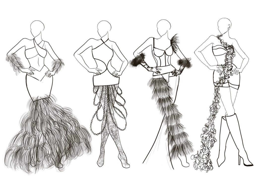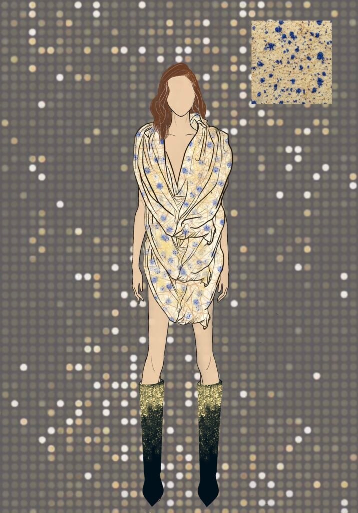 Dancing Queen for me isn’t just a song; it’s a feeling rooted deeply inside my heart. It’s a song that creates memories and experiences every time you hear it again. Being a song very personally close to me, as my friends and I listen to it in all our happy and sad moments while shouting it at the top of our lungs and crying to it at the same time. It is also a song that represents femininity, which is more about being carefree, joyful, and bold and is the true essence of the 1970s disco era. The song and 70s disco are all about the feeling of shimmers, glamour, bold colors, and movement, and that is what my designs for this collection would represent.