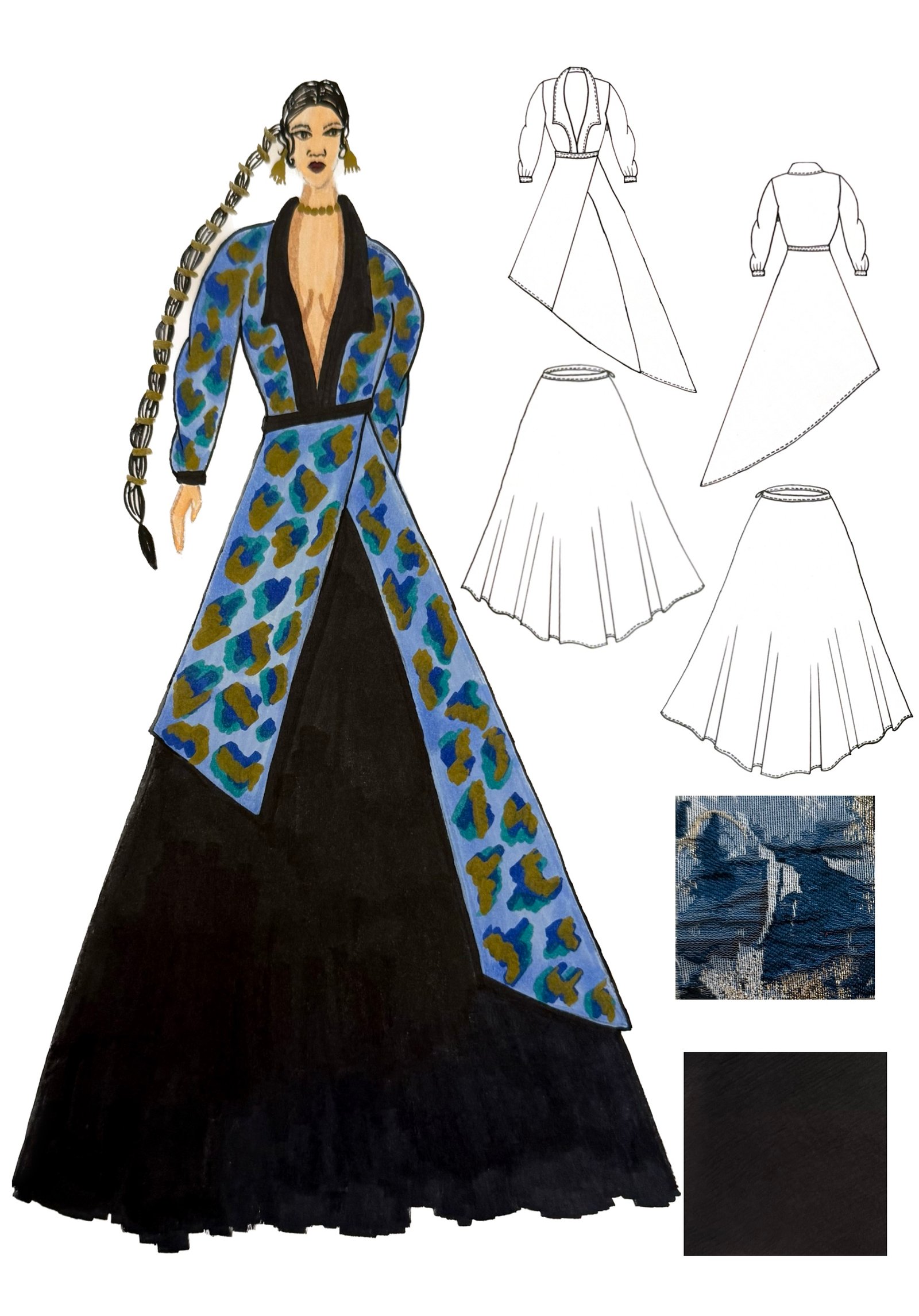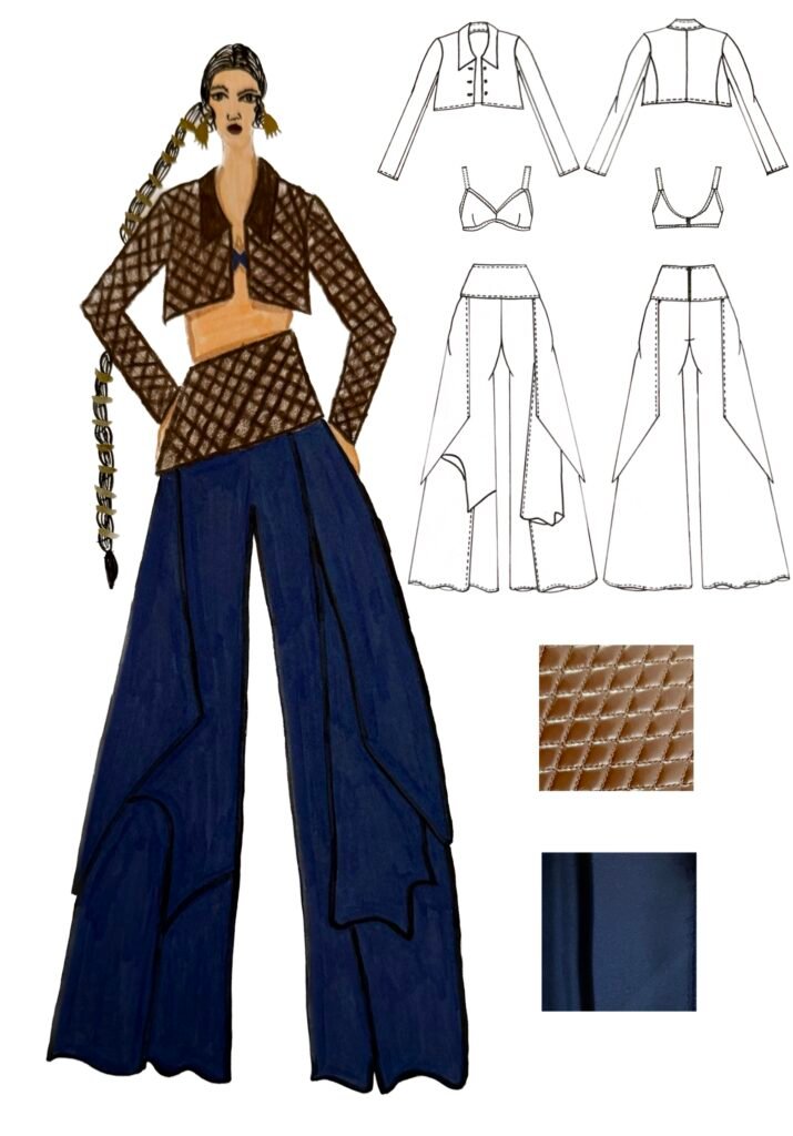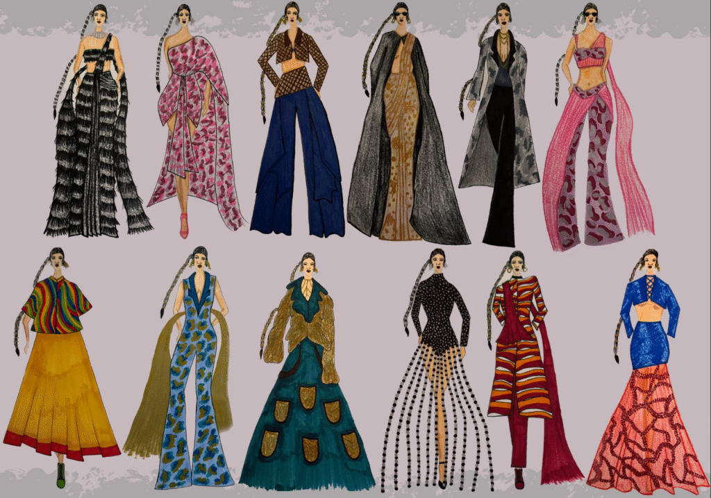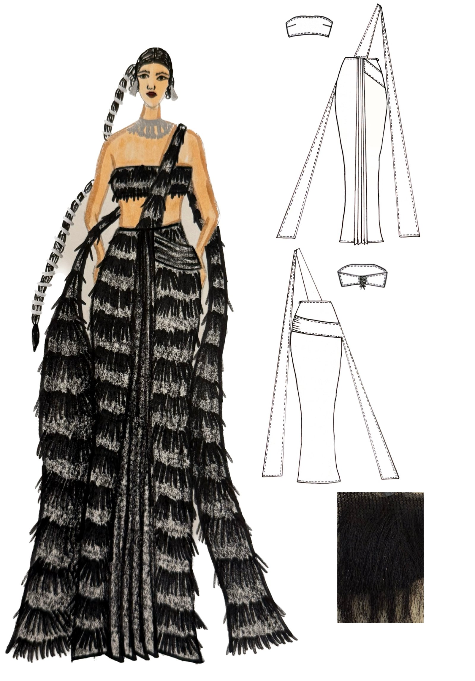Maharani” means queen and every piece in this collection represents the maharani that exists within us all. This collection represents my vision of blending tradition and rebellion to challenge societal standards. I have always been deeply rooted in my Indian culture as much as I love designing it and this collection reimagines the elegance of traditional Indian evening wear through a bold, contemporary lens. Inspired by the timeless beauty of sarees and lehengas, I infused these classic silhouettes with daring elements like deep cuts, oversized silhouettes and sheer fabrics. For styling, I combined modern elements like sneakers and sunglasses with Indian elements like the long hair braid called the “Paranda” and jewellery to reflect the strength and individuality of today’s woman.