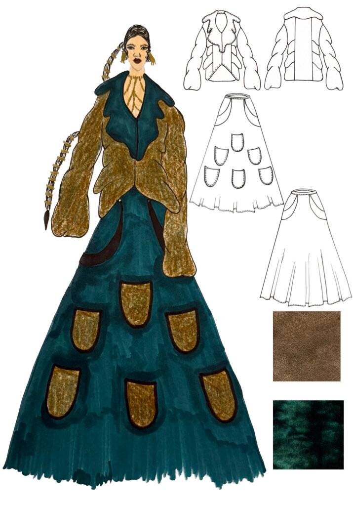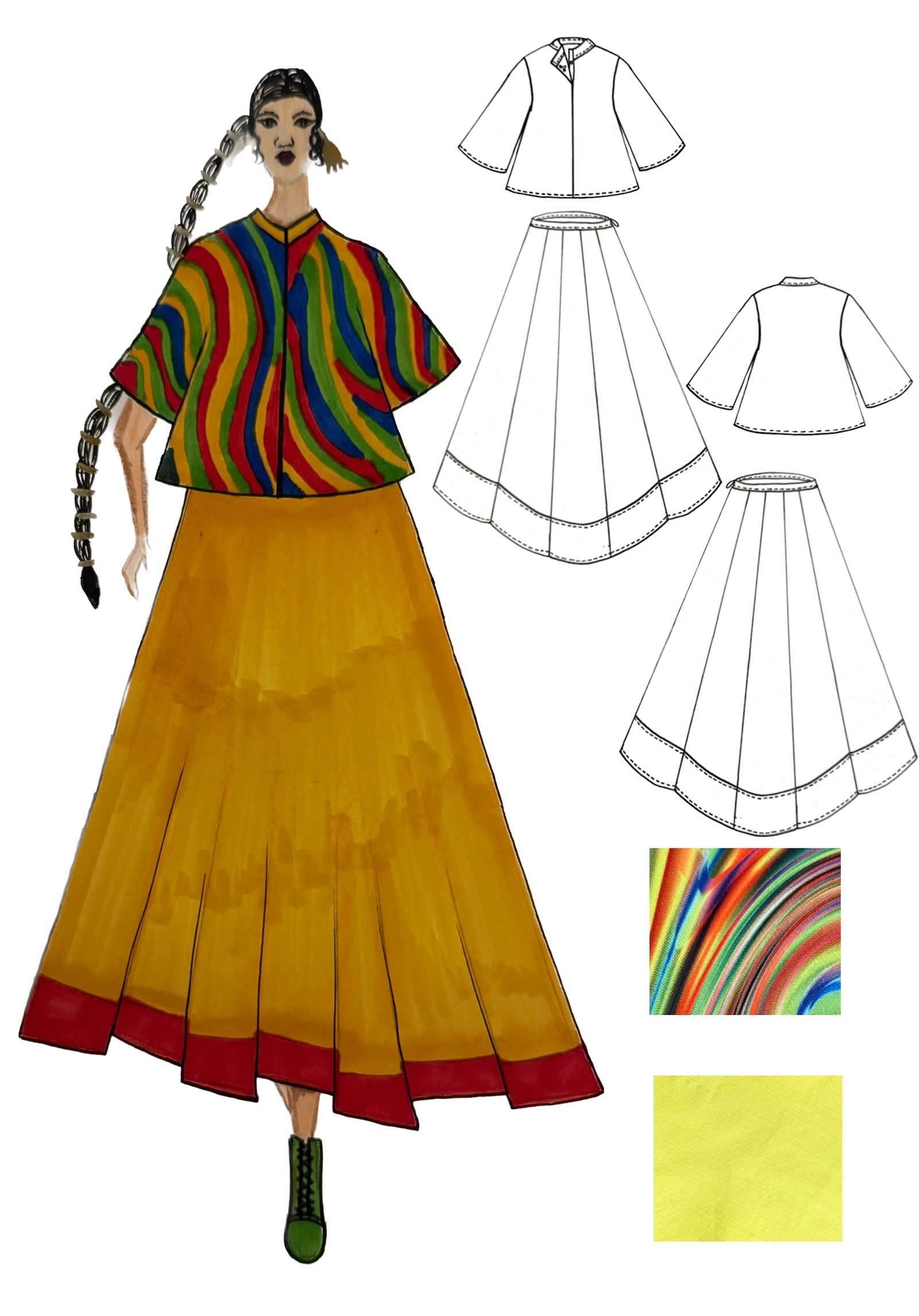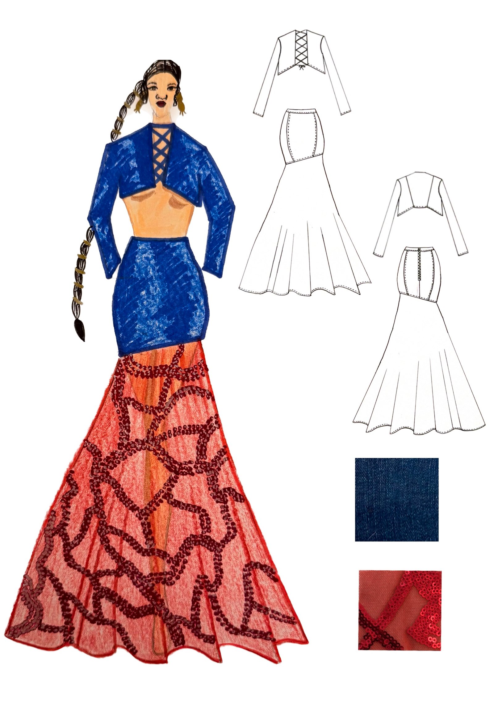 Maharani” means queen and every piece in this collection represents the maharani that exists within us all. This collection represents my vision of blending tradition and rebellion to challenge societal standards. I have always been deeply rooted in my Indian culture as much as I love designing it and this collection reimagines the elegance of traditional Indian evening wear through a bold, contemporary lens. Inspired by the timeless beauty of sarees and lehengas, I infused these classic silhouettes with daring elements like deep cuts, oversized silhouettes and sheer fabrics. For styling, I combined modern elements like sneakers and sunglasses with Indian elements like the long hair braid called the “Paranda” and jewellery to reflect the strength and individuality of today’s woman.